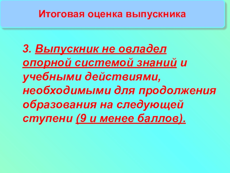 и учебными действиями, необходимыми для продолжения образования на следующей ступени (9 и менее баллов).
