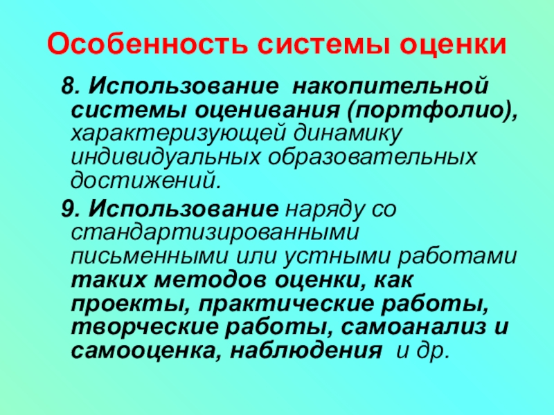 8. Использование накопительной системы оценивания (портфолио), характеризующей