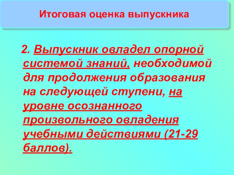 2. Выпускник овладел опорной системой знаний, необходимой для