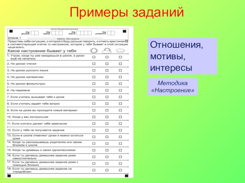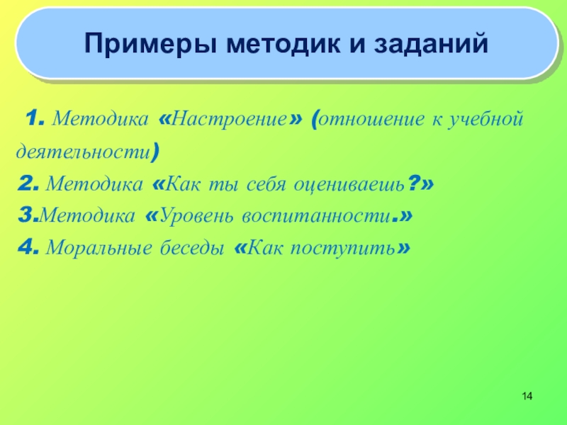 Примеры методик и заданий