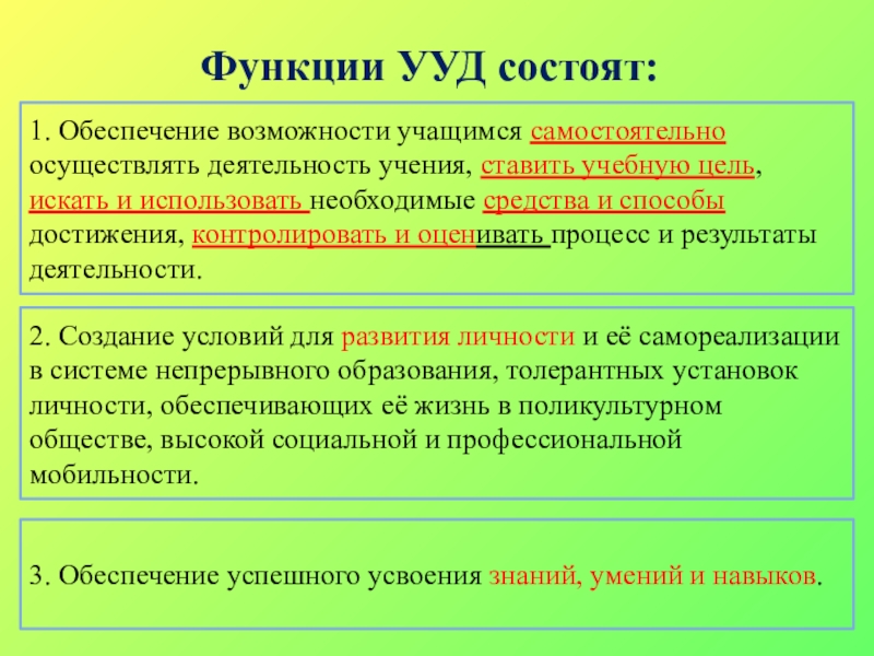 3. Обеспечение успешного усвоения знаний, умений и навыков.