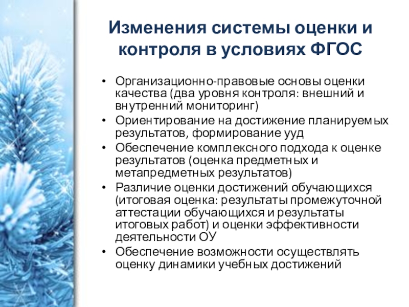 Слайд 4Изменения системы оценки и контроля в условиях ФГОС