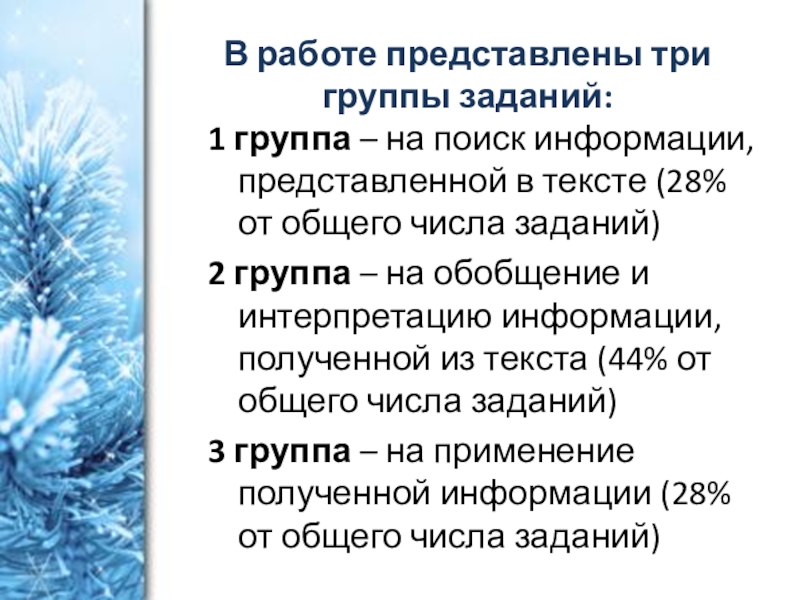 3 группа – на применение полученной информации (28% от общего числа заданий)