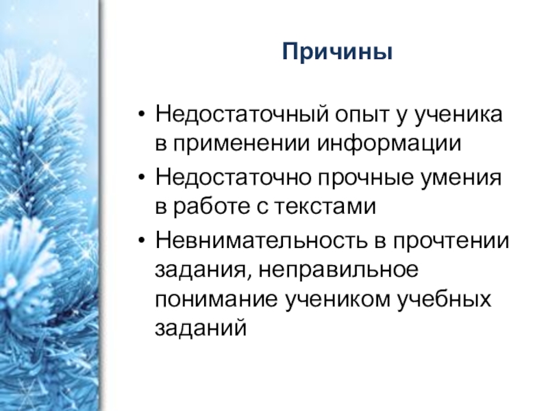Невнимательность в прочтении задания, неправильное понимание учеником учебных заданий