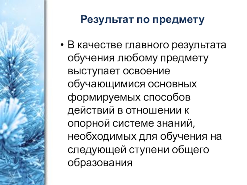 Слайд 22В качестве главного результата обучения любому предмету выступает освоение обучающимися основных