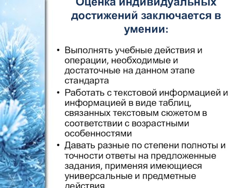 Слайд 37Оценка индивидуальных достижений заключается в умении: