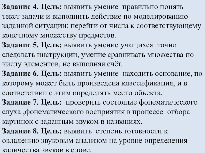 Слайд 15Задание 4. Цель: выявить умение правильно понять текст задачи и выполнить