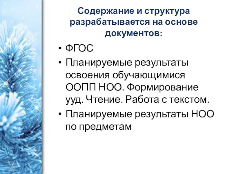 Слайд 33Содержание и структура разрабатывается на основе документов: