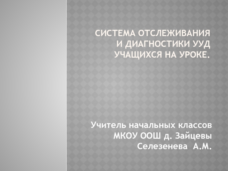 Слайд 1 Система отслеживания и диагностики УУД учащихся на уроке.