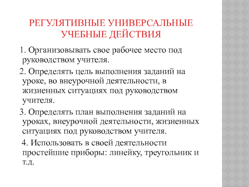 4. Использовать в своей деятельности простейшие приборы: линейку, треугольник и т.д.