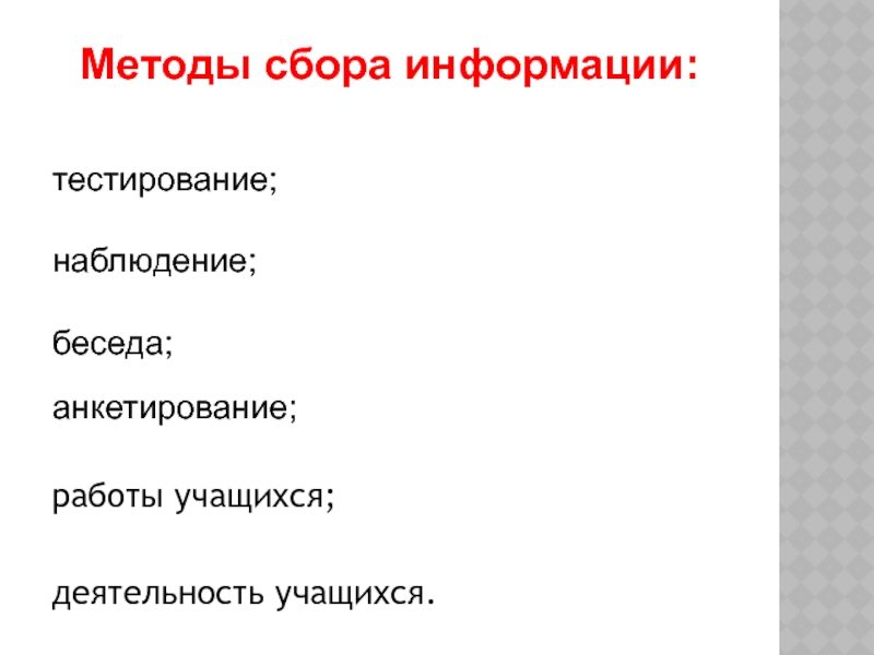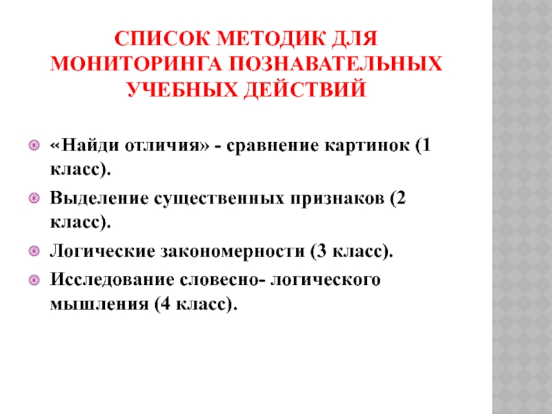Слайд 15Список методик для мониторинга ПОЗНАВАТЕЛЬНЫХ УЧЕБНЫХ ДЕЙСТВИЙ