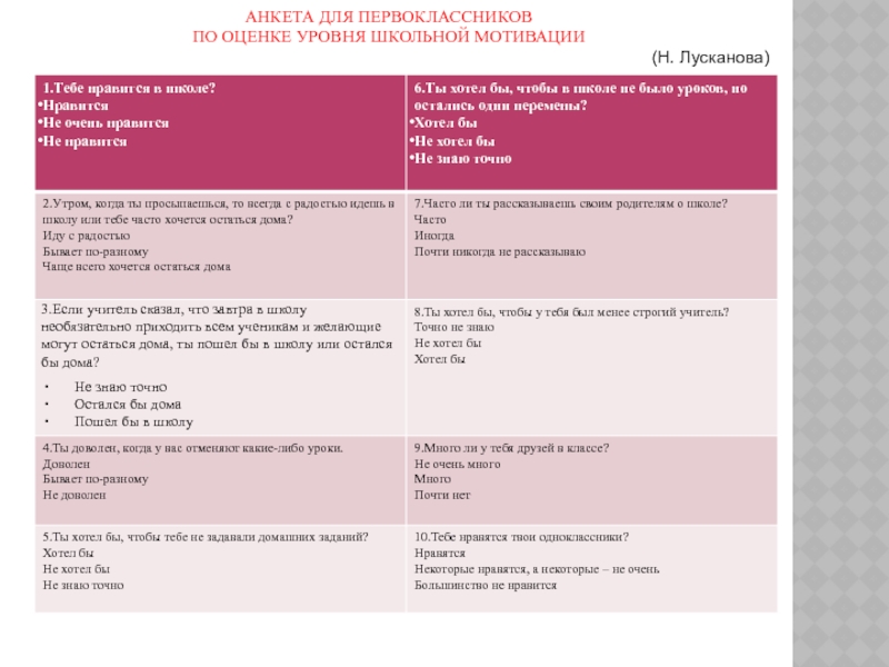 Слайд 23АНКЕТА ДЛЯ ПЕРВОКЛАССНИКОВ