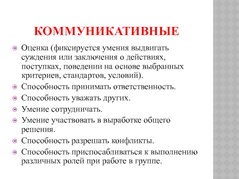 Оценка (фиксируется умения выдвигать суждения или заключения о действиях, поступках, поведении