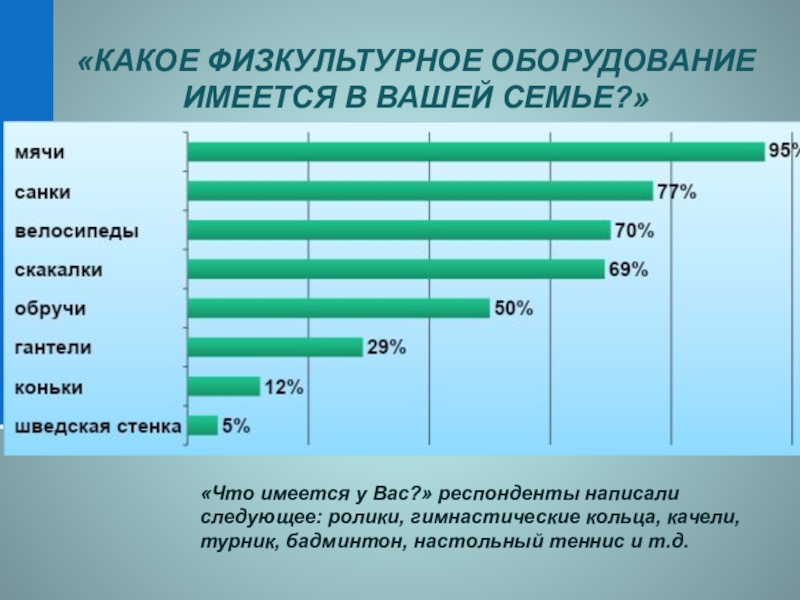 Слайд 20«Какое физкультурное оборудование имеется в Вашей семье?»