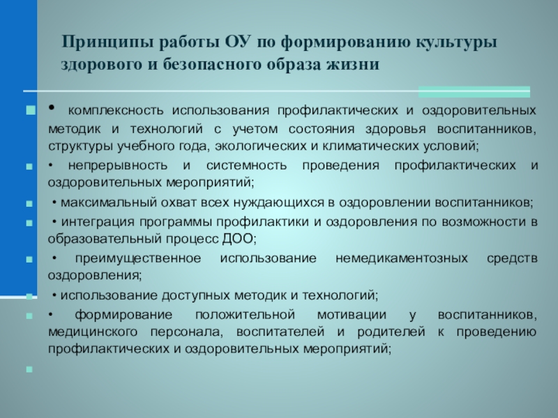 Слайд 31Принципы работы ОУ по формированию культуры здорового и безопасного образа жизни