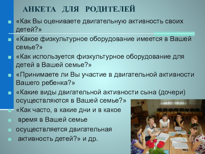 Слайд 19АНКЕТА ДЛЯ РОДИТЕЛЕЙ