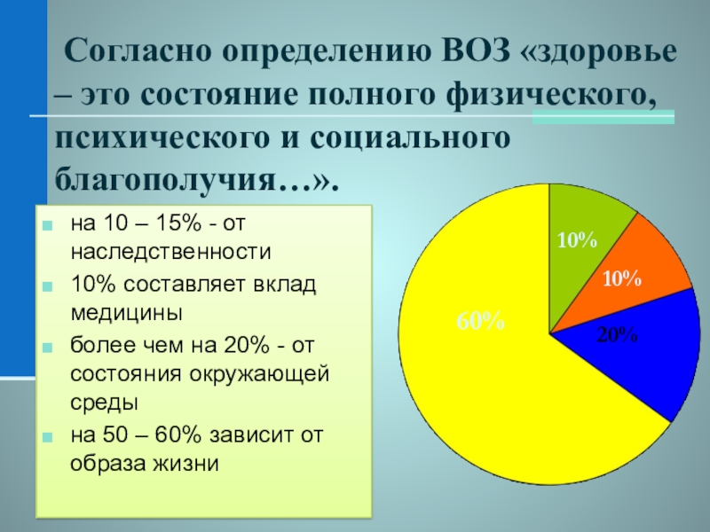 Слайд 2 Согласно определению ВОЗ «здоровье – это состояние полного физического, психического