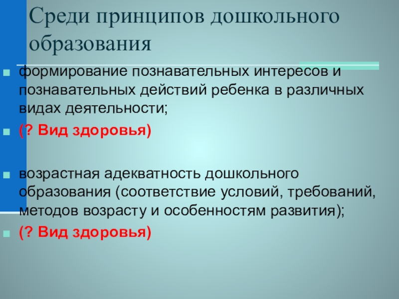 Слайд 8Среди принципов дошкольного образования