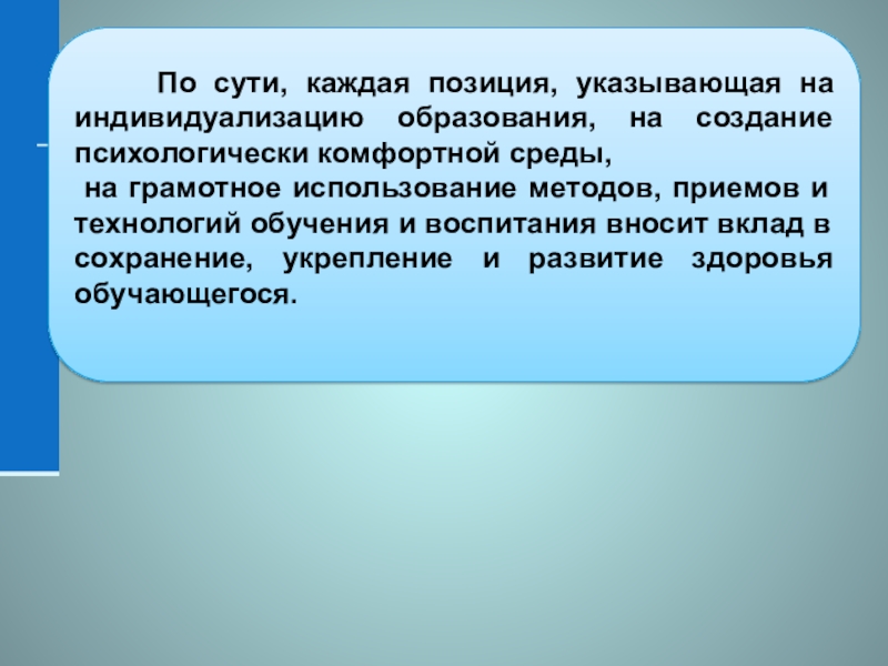 Слайд 30 По сути, каждая позиция, указывающая на индивидуализацию образования,