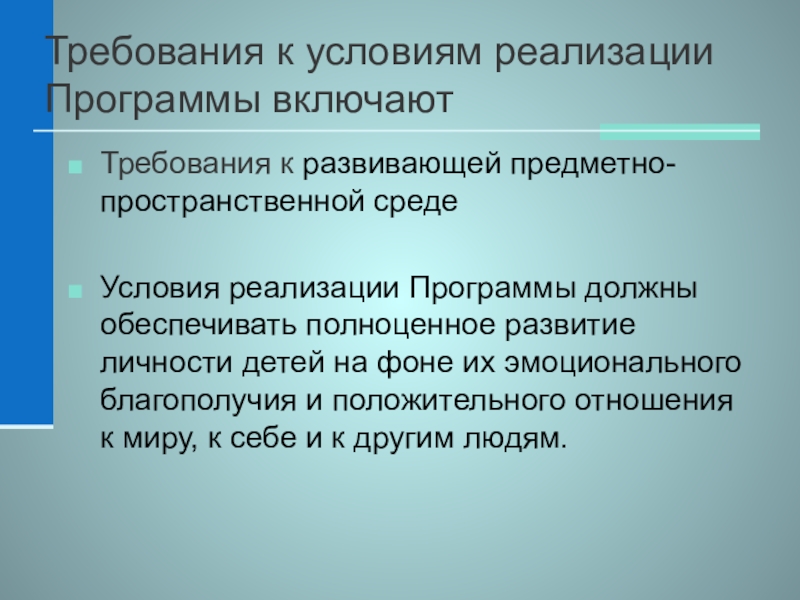Слайд 26Требования к условиям реализации Программы включают