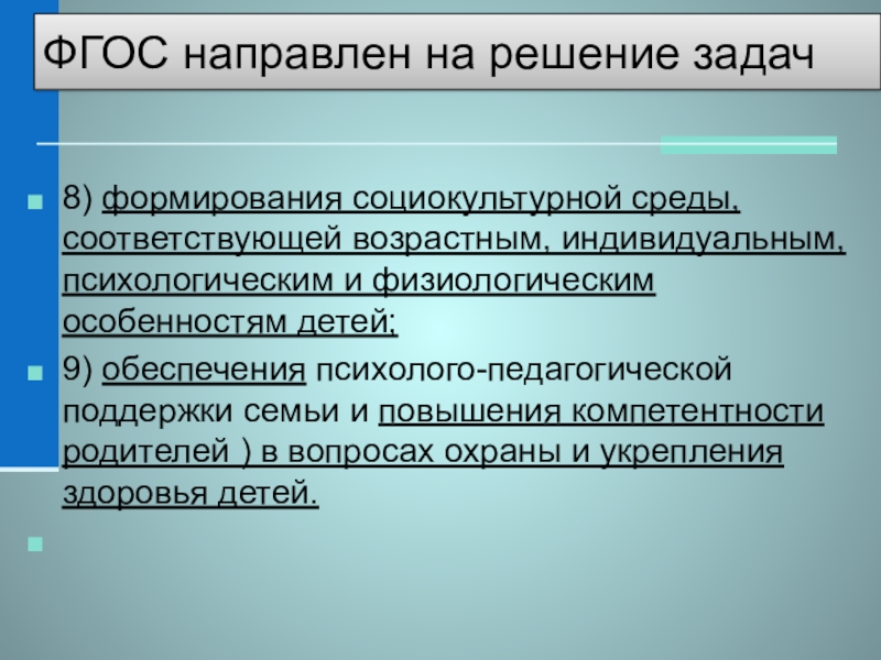 Слайд 10ФГОС направлен на решение задач