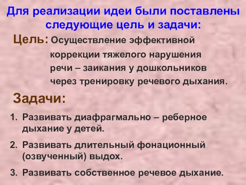 Задачи: увеличить жизненную емкость легких, развить ощущение движения диафрагмы, научить детей бесшумно производить вдох и рационально расходовать воздух на выдохе.