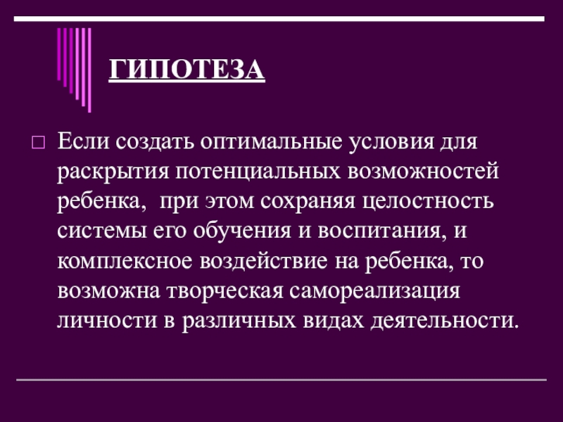 Если создать оптимальные условия для раскрытия потенциальных возможностей ребенка, при этом
