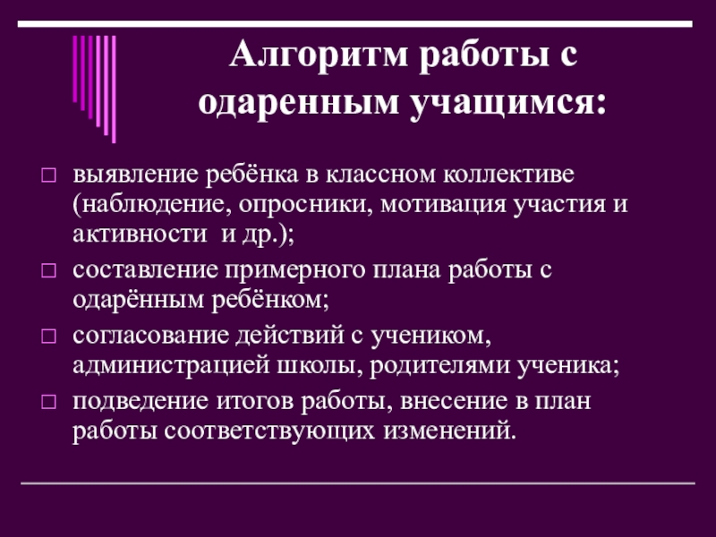 Слайд 14Алгоритм работы с одаренным учащимся: