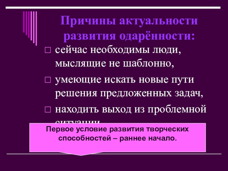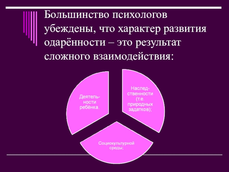 Слайд 8Большинство психологов убеждены, что характер развития одарённости – это результат сложного