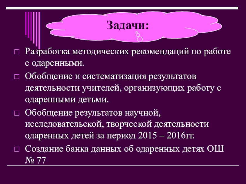 Слайд 10Разработка методических рекомендаций по работе с одаренными.