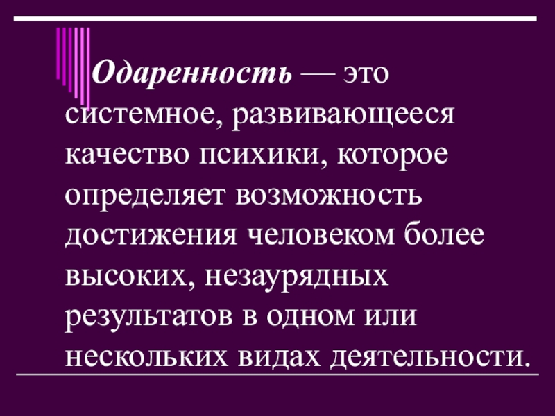 Слайд 13 Одаренность — это системное, развивающееся качество психики, которое