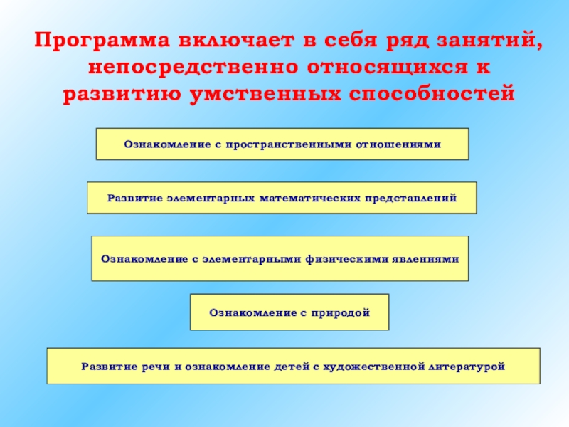 Программа включает в себя ряд занятий, непосредственно относящихся