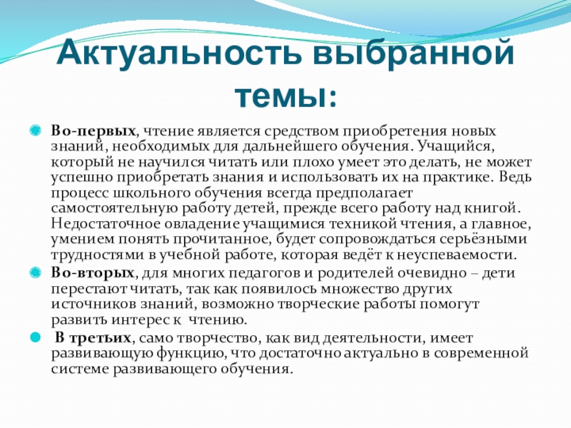 Во-вторых, для многих педагогов и родителей очевидно – дети перестают читать, так как появилось множество других источников знаний, возможно творческие работы помогут развить интерес к чтению.