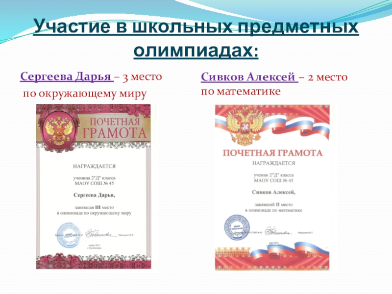 Слайд 10Участие в школьных предметных олимпиадах:
