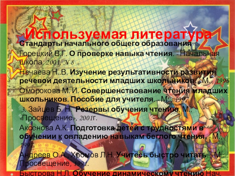 3. Зайцев Б. Н. Резервы обучения чтению. М., «Просвещение», 2001г.