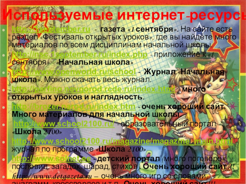 http://www.openworld.ru/school - Журнал «Начальная школа». Можно скачать весь журнал.