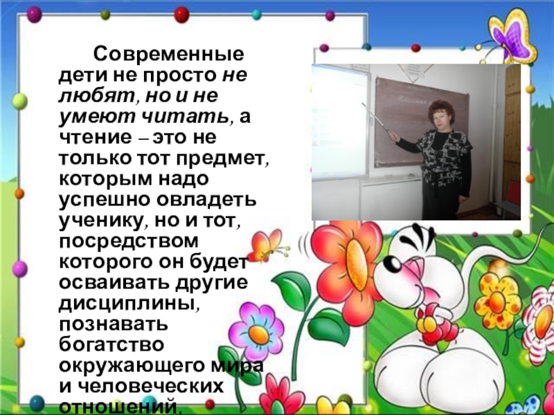а чтение – это не только тот предмет, которым надо успешно овладеть ученику, но и тот, посредством которого он будет осваивать другие дисциплины, познавать богатство окружающего мира и человеческих отношений, формировать в себе собственное отношение к действительности.