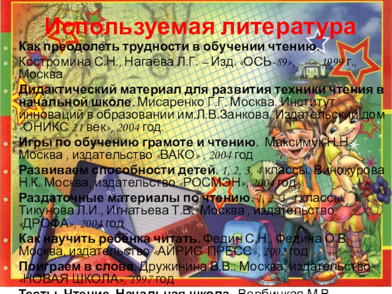 Аксенова А.К. Подготовка детей с трудностями в обучении к овладению навыкам беглого чтения. - М., 1997.