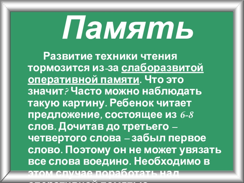 Развитие техники чтения тормозится из-за слаборазвитой оперативной памяти. Что это значит?