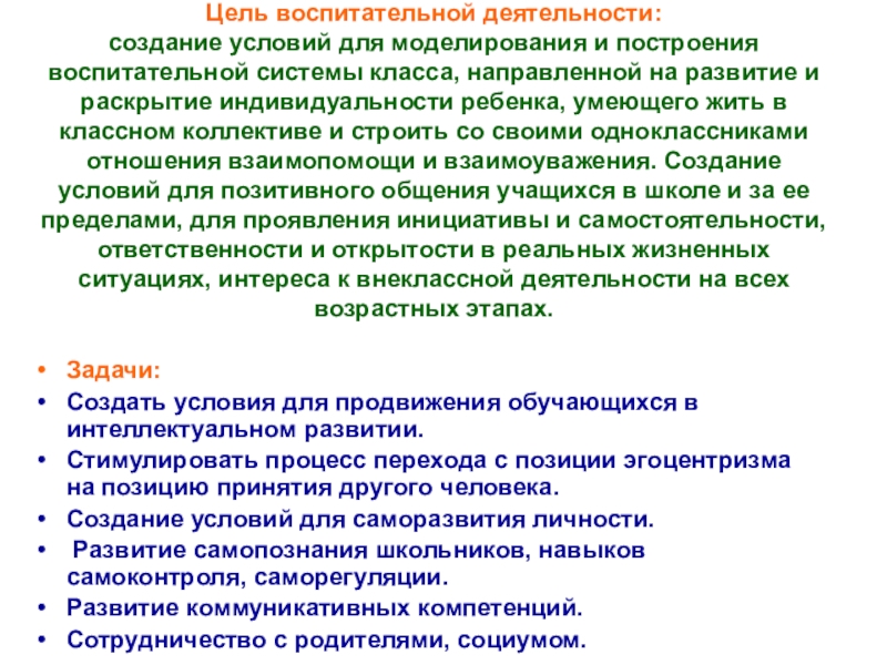 Стимулировать процесс перехода с позиции эгоцентризма на позицию принятия другого человека.