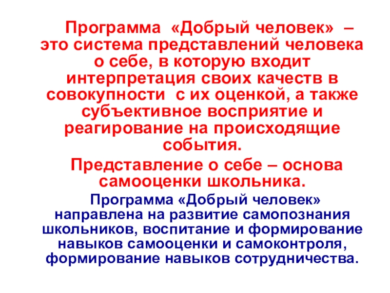 Развитие самопознания школьников, навыков самоконтроля, саморегуляции.