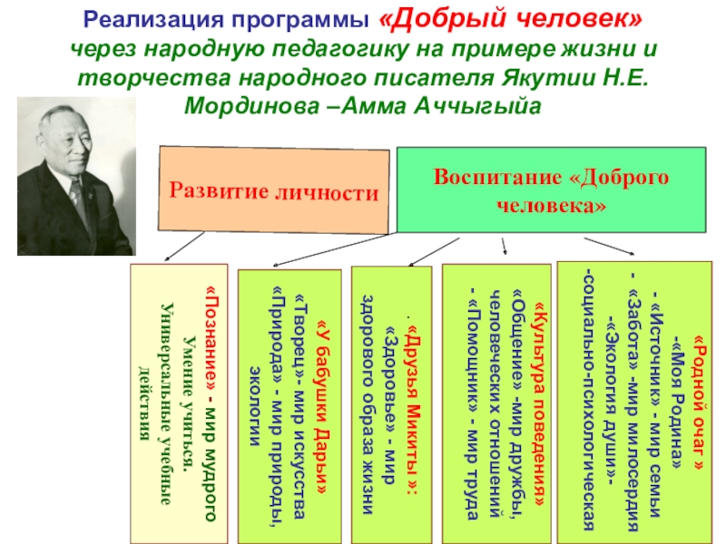 через народную педагогику на примере жизни и творчества народного писателя Якутии Н.Е. Мординова –Амма Аччыгыйа
