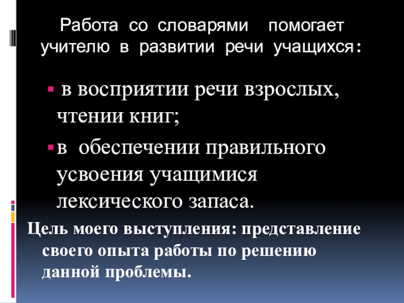 Слайд 5Работа со словарями помогает учителю в развитии речи учащихся: