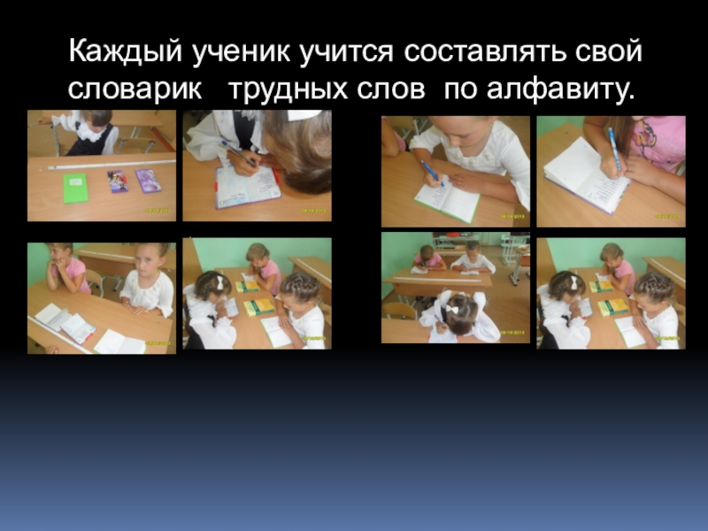 Слайд 10Каждый ученик учится составлять свой словарик трудных слов по алфавиту.