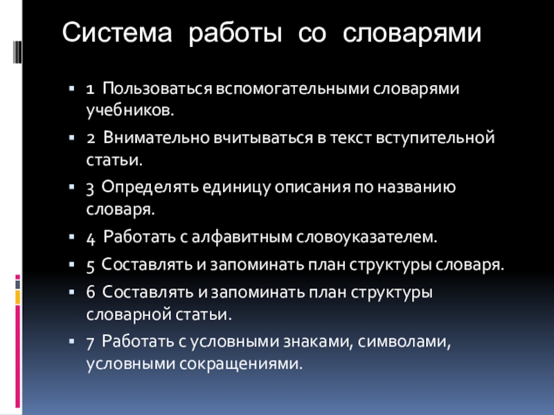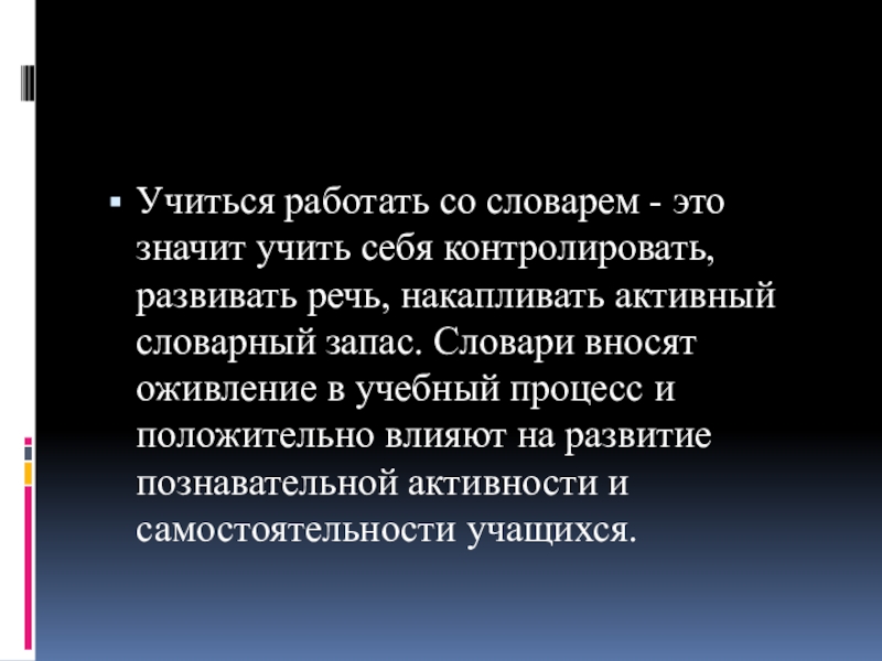 Учиться работать со словарем - это значит учить себя контролировать, развивать