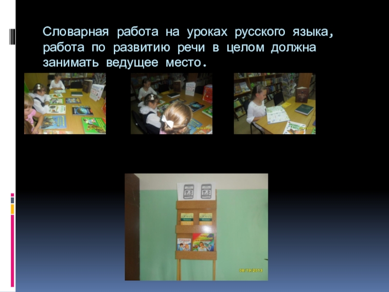 Слайд 12Словарная работа на уроках русского языка, работа по развитию речи в