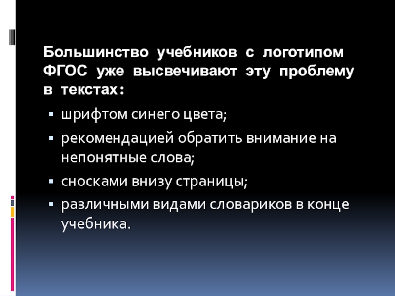 Большинство учебников с логотипом ФГОС уже высвечивают эту проблему в текстах: