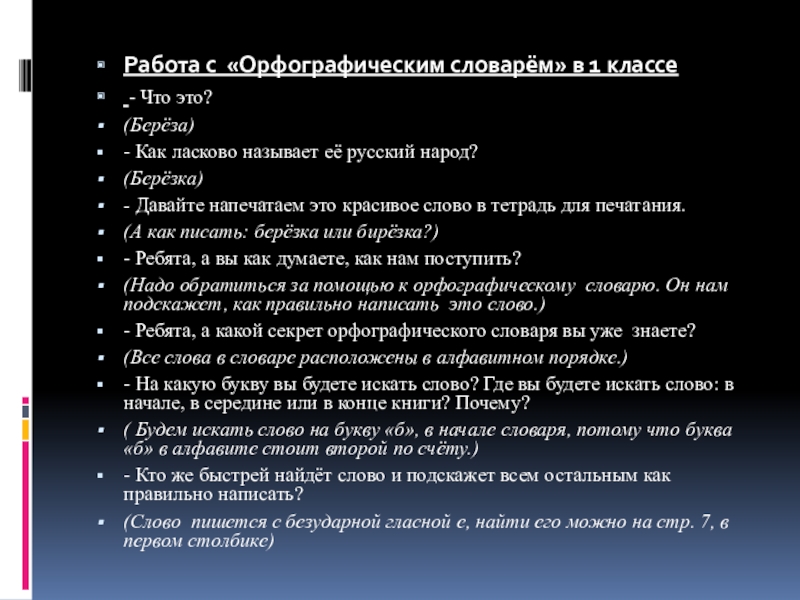 - На какую букву вы будете искать слово? Где вы будете искать слово: в начале, в середине или в конце книги? Почему?
