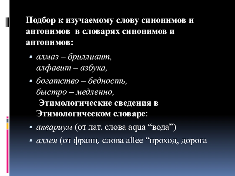 Слайд 20Подбор к изучаемому слову синонимов и антонимов в словарях синонимов и
