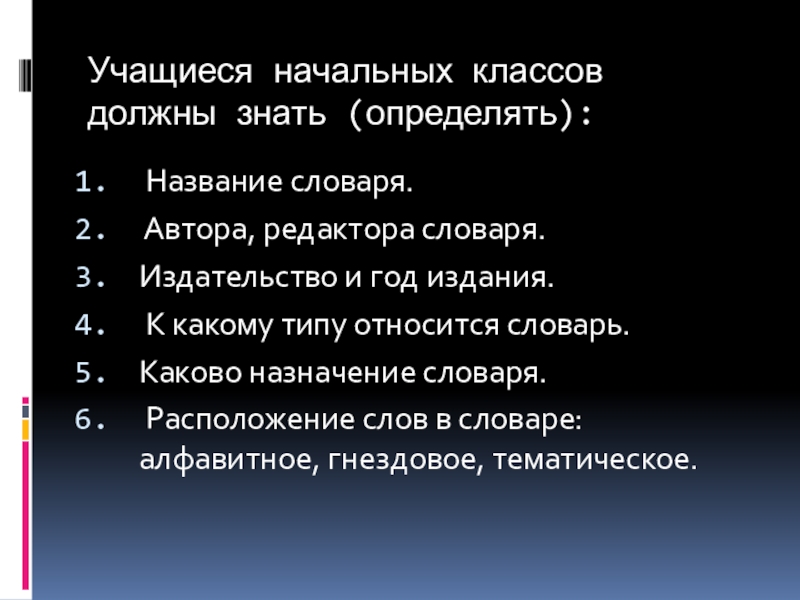 Слайд 26Учащиеся начальных классов должны знать (определять):